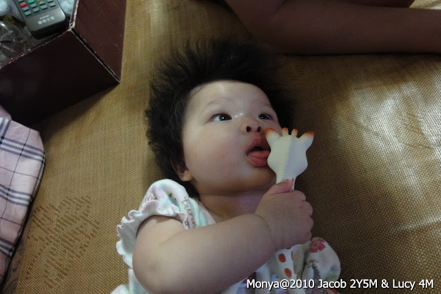 三、四個多月的小寶妹開始牙齦癢癢,超愛啃小雞腿~