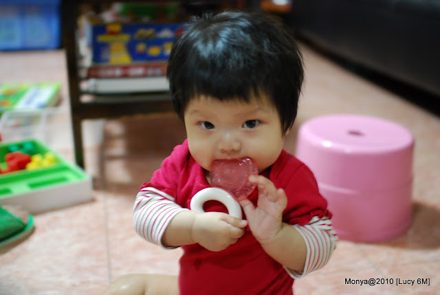 照片中那個固齒器會冰冰的,看他啃得多起勁~