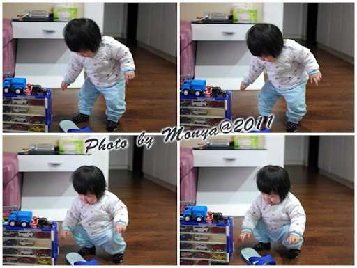 回到新家的小人完全沒有認生的困擾,大的馬上熟門熟路的摸到玩具櫃,搬了火車下來玩~