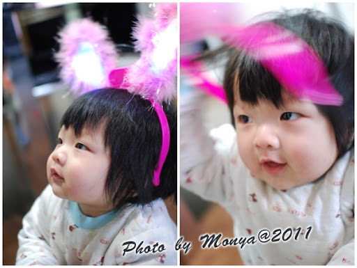 麻麻尾牙發的兔耳朵,拿給兩兄妹帶~